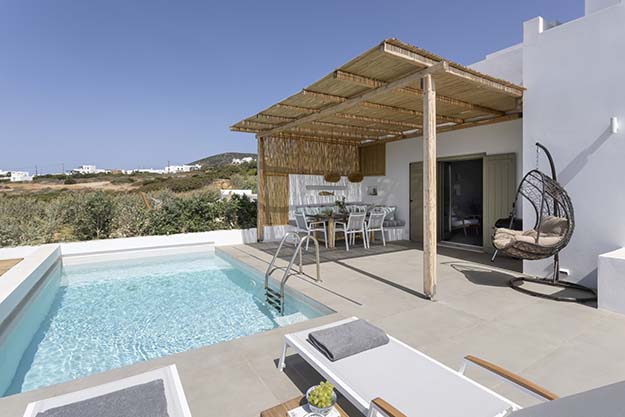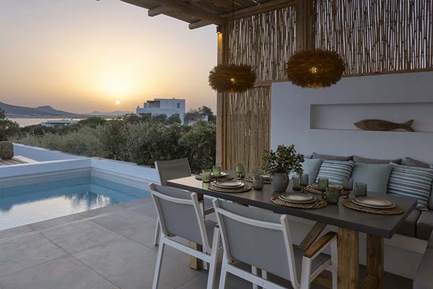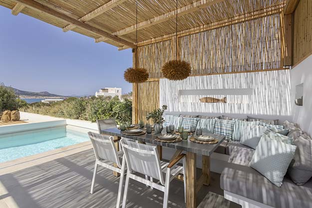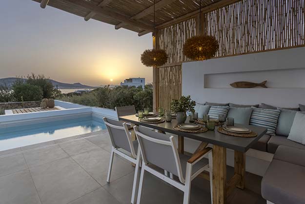 Το όνομα της κατοικίας Almyra φέρνει στο νου το αλμυρό αποτύπωμα του θαλασσινού νερού, βασικό χαρακτηριστικό των χαλαρών διακοπών και αναπόσπαστο κομμάτι μίας αυθεντικής Κυκλαδίτικης εμπειρίας. Απλότητα, λευκές φόρμες που αντανακλούν το ηλιακό φως, πινελιές χρώματος και γήινες λεπτομέρειες από φυσικά υλικά συνθέτουν έναν απόλυτα αρμονικό χώρο. Στην Almyra οι μέρες κυλάνε αβίαστα για όσους αναζητούν ηρεμία, άνεση και επαφή με ένα αναλλοίωτο φυσικό περιβάλλον. Φιλόξενες γωνιές χαλάρωσης, όπως η κρεμαστή κούνια δίπλα στην πισίνα, ξεχωριστά διακοσμητικά στοιχεία Κυκλαδικής τέχνης, αλλά και επιλεγμένα βιβλία και επιτραπέζια για όλη την οικογένεια θα εμπλουτίσουν απολαυστικές καλοκαιρινές μέρες γεμάτες χαμόγελα, ανεμελιά και θαλασσινό αλάτι.